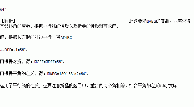 如图,把一张长方形纸条ABCD沿EF折叠,若∠1=58°,则∠AEG=______.