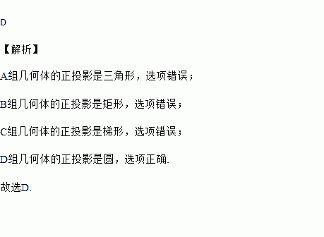 如图,当投影线由物体的前方射到后方时,下列一组几何体的正投影是圆的是( )
