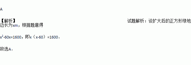 今年我市计划扩大城区绿地面积,现有一块长方形绿地,它的短边长为60m,若将短边增大到与长边相等(长边不变),使扩大后的绿地的形状是正方形,则扩大后的绿地面积比原来增加1600m2.设扩大后的正方形绿地边长为x m,下面所列方程正确的是( )