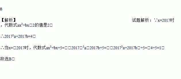 已知x=2017时,代数式ax3+bx﹣2的值是2,当x=﹣2017时,代数式ax3+bx+5的值等于( )