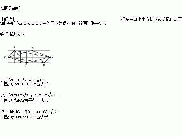 如图,利用格点 A,B,C,D,E,F 中的四个点为顶点,你能画出多少个不同的平行四边形?请画出来,并用符号表示出来.