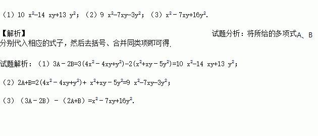 求:(1) 3A﹣2B; (2) 2A+B;(3)(3A﹣2B)﹣(2A+B)的值.