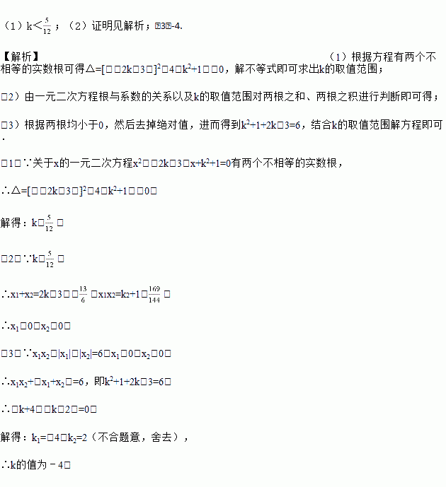 关于x的一元二次方程x2﹣(2k﹣3)x+k2+1=0有两个不相等的实数根x1、x2.