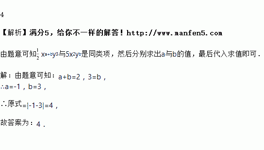 如果单项式与的和仍是单项式,则|a﹣b|的值为______________.
