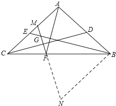 (2)先过B作AB的垂线,交MF的延长线于N,根据ASA判定△ABF≌△NBF,得出对应边相等,对应角相等,再根据同角的余角相等,得出∠GBN=∠BAF=∠N,进而判定BG=NG,最后根据线段的和差关系得出结论.