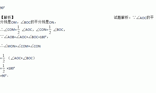 如图,O为直线AB上一点,∠AOC的平分线是OM,∠BOC 的平分线是ON,则∠MON的度数为_________.