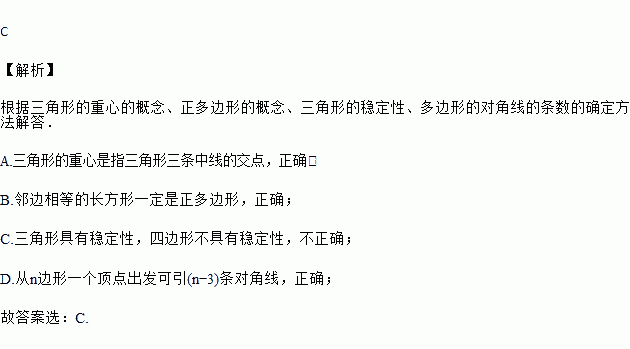 C. 三角形和四边形都具有稳定性 D. 从边形一个顶点出发可引条对角线
