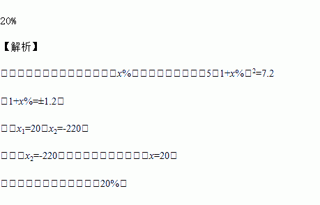 某校图书馆去年底有图书5万册,预计到明年年底增加到7.2万册,则这两年的年平均增长率为___________.