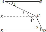 分析:作CE∥AB,根据平行线的性质即可求得∠3和∠4,根据ACD=∠3+∠4即可求解.