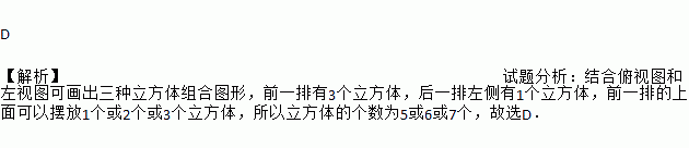 A. 5或6 B. 5或7 C. 4或5或6 D. 5或6或7
