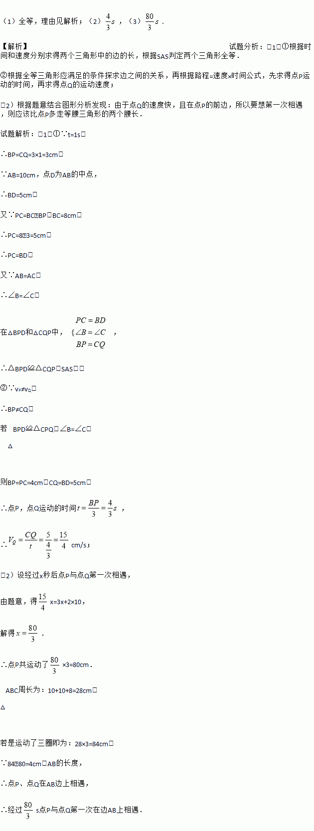 (1)如果点P在线段BC上以3cm/s的速度由B点向C点运动,同时,点Q在线段CA上由C点向A点运动.