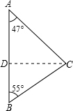 Î÷ÄÏÎåÊ¡µÄ³ÖÐø¸Éºµ£¬ÈÃÐí¶àÍøÓѸÐͬÉíÊÜ¡¢½¹×Ʋ»°²£¬¸üÓв»ÉÙÍøÓÑ×Ô·¢×é³ÉˮԴÐж¯Ð¡×éµ½ºµÇøÕÒË®£®¹¦·ò²»¸ºÓÐÐÄÈË£¬ÖÕÓÚÓÐÈËÔÚɽ¶´CÀï·¢ÏÖÁ˰µºÓ£®¾¿±²ì£¬ÔÚɽ¶´µÄÎ÷ÃæÓÐÒ»ÌõÄϱ±×ßÏòµÄ¹«Â·Á¬½Ó×ÅA¡¢BÁ½´åׯ£¬É½¶´CλÓÚA´åׯÄÏÆ«¶«47¡ã·½Ïò£¬ÇÒλÓÚB´åׯ±±Æ«¶«55¡ã·½Ïò£®Îª·½±ãA¡¢BÁ½´åׯµÄ´åÃñȡˮ£¬Éç»á°®ÐÄÈËʿ׼±¸¾¡¿ì´Óɽ¶´C´¦Ïò¹«Â·AB½ô¼±ÐÞ½¨Ò»Ìõ×î½üµÄ¼òÒ×¹«Â·CD£®ÏÖÒÑÖªA¡¢BÁ½´åׯÏà¾à14ǧÃ×£¬Ã¿ÐÞ½¨1ǧÃ׵ļòÒ×¹«Â·Ðè·ÑÓÃ16 000Ôª£¬ÇëÇó³öÐÞ½¨¸Ã¼òÒ×¹«Â·µÄ×îµÍ·ÑÓ㨾«È·µ½100Ôª£©£®