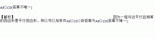 已知AB∥CD,添加一个条件____________,使得四边形ABCD为平行四边形.