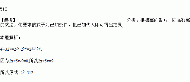 已知2x+5y-9=0,求4x·32y的值.