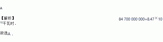 A 【解析】84 700 000 000=8.47×1010千瓦时. 故选A.