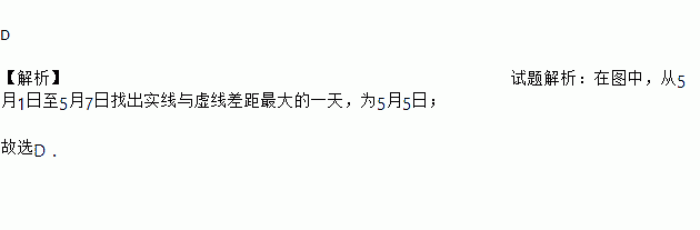 如图是某市5月1日至5月7日每天最高、最低气温的折线统计图,在这7天中,日温差最大的一天是( )