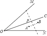 解:作∠MON的平分线OC,连接AB,作线段的垂直平分线与OC交于点P,