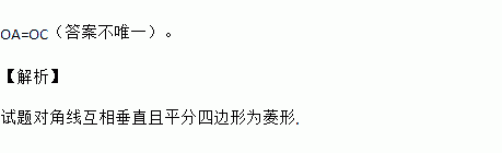 如图,四边形ABCD是对角线互相垂直的四边形,且OB=OD,请你添加一个适当的条件_______,使ABCD成为菱形(只需添加一个即可)