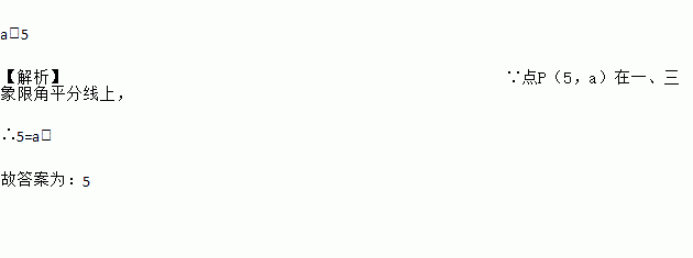 已知点P的坐标为(5,a),且点P在一、三象限角平分线上,则a=_________.