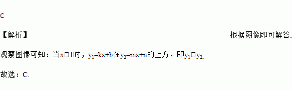 如图,当y1>y2时,x的取值范围是 ( )
