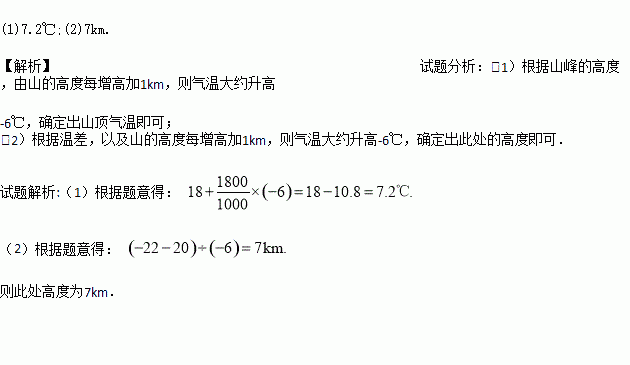 (2)若某地的地面温度为20℃,高空某处的气温为﹣22℃,求此处的高度.
