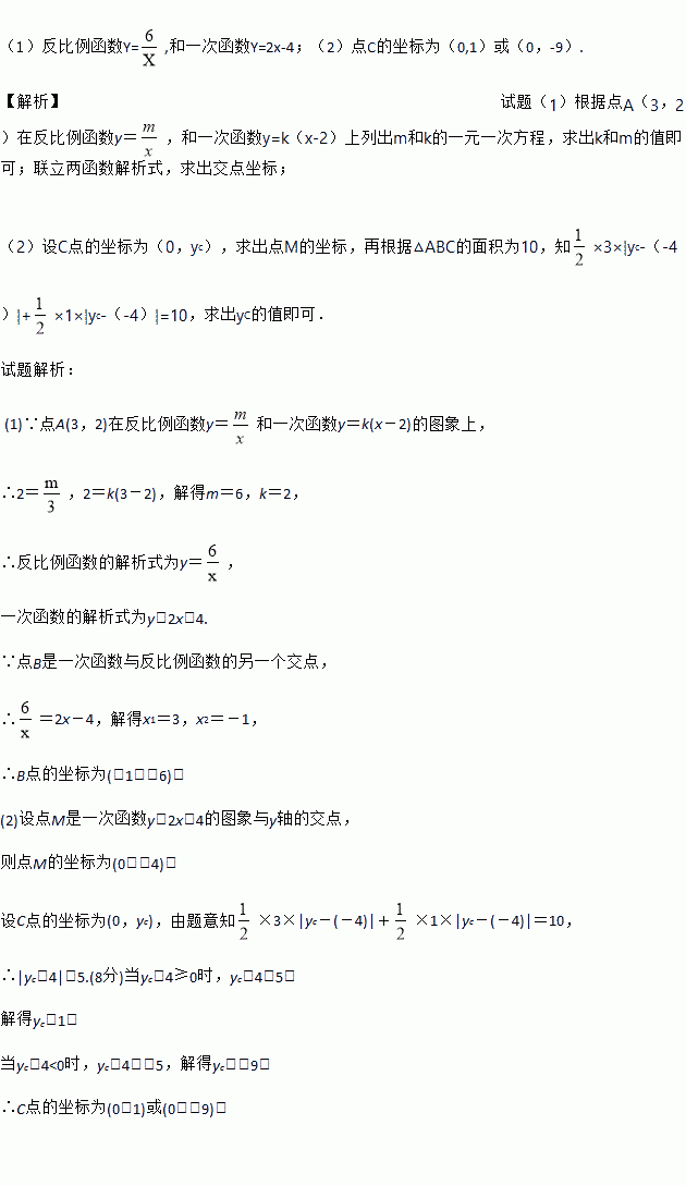 的图象与一次函数 y =k(x -2 )的图象交点为A(3,2),B(x,y)。