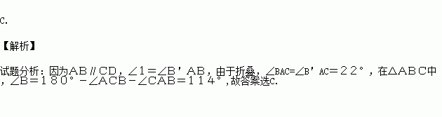 如图,将ABCD沿对角线AC折叠,使点B落在点B’处.若∠1=∠2=44°,则∠B为( )