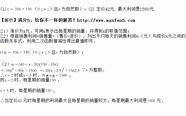 如何定价才能使每星期的利润![]()