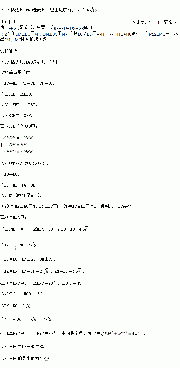如图,BD是△ABC的角平分线,它的垂直平分线分别交AB,BD,BC于点E,F,G,连接ED,DG.