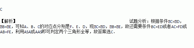 在ΔABC和ΔDEF中,已知∠C=∠D,∠B=∠E,要判断这两个三角形全等,还需添加条件( )