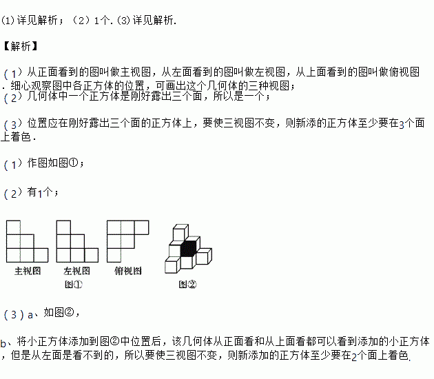b.若考虑颜色,要使三视图不变,则新添的正方体至少要在几个面上着色?