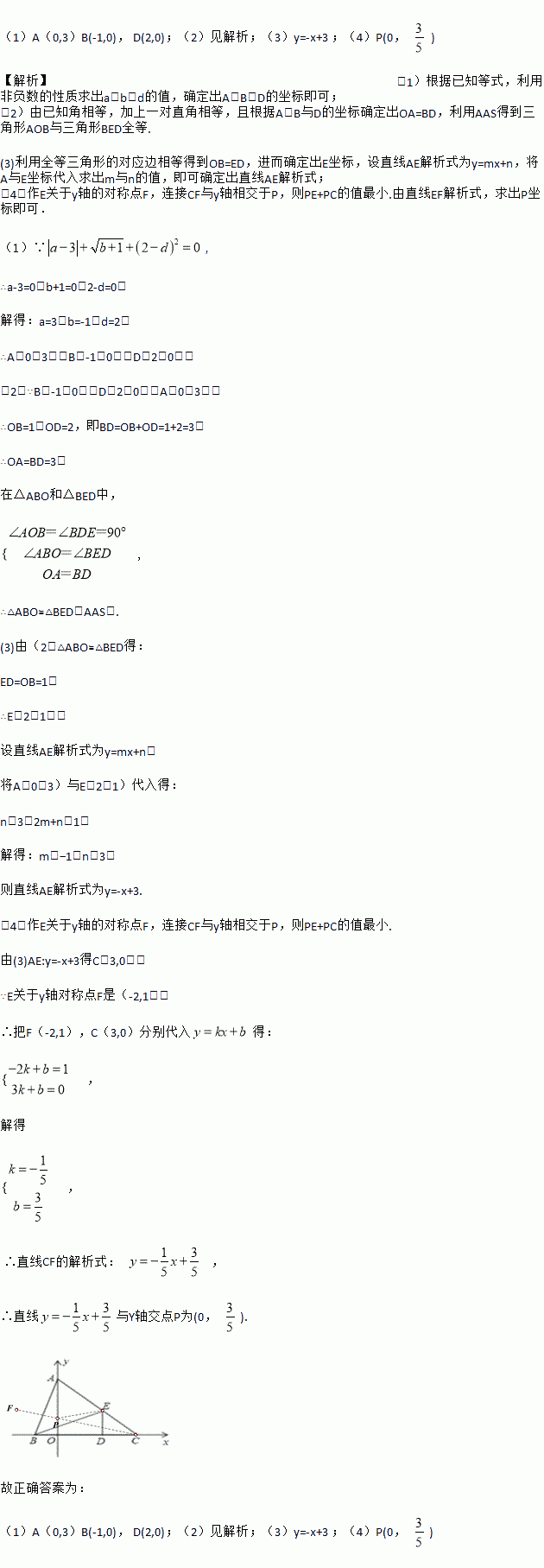 如图,在平面直角坐标系中,点A(0,a),点B(b,0),点D(d,0),其中a、b、d满足: