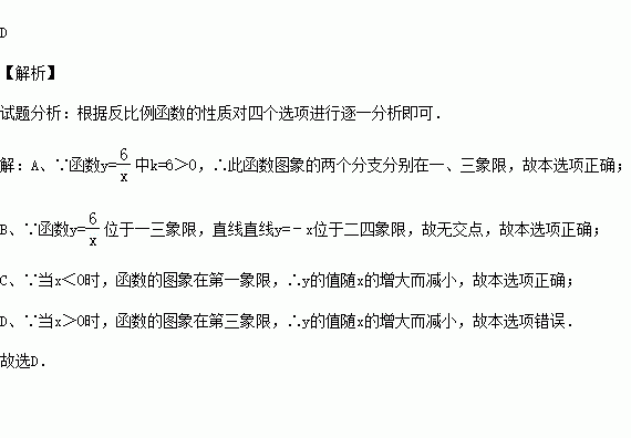 D.当x>0时,y的值随x的增大而增大