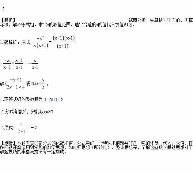 先化简,再求值,其中x的值从不等式组的整数解中选取.