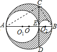 13.分析 连接CA,DA,根据垂径定理得到CE=ED=8,根据圆周角定理得到∠ACB=90°,易证Rt△ECA∽Rt△EBD,则EC2=EA•EB=100;利用S阴影部分=S⊙O-S⊙1-S⊙2和圆的面积公式进行变形可得到阴影部分的面积=$\frac{1}{2}$•AE•EB•π,即可计算出阴影部分的面积.