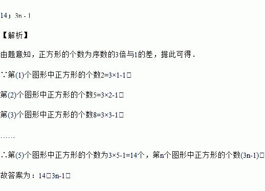 如图,下列图案是由火柴棒按某种规律搭成的,第个图案中有2个正方形,第个图案中有5个正方形,第个图案中有8个正方形,则第个图案中有______个正方形,第n个图案中有______个正方形.