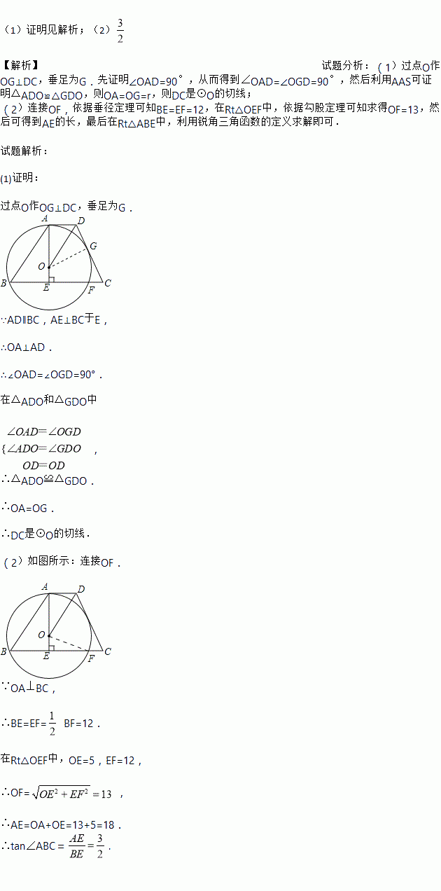(2)若BF=24,OE=5,求tan∠ABC的值.