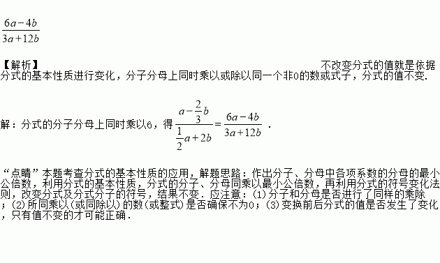 不改变分式的值,将分式的分子、分母的各项系数都化为整数,则= ___________.