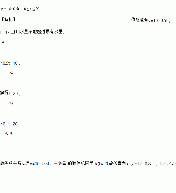 一个装有千克水的水箱,每小时流出千克水,水箱中的余水量(千克)与时间(小时)之间的关系式是__________,自变量的取值范围是__________.