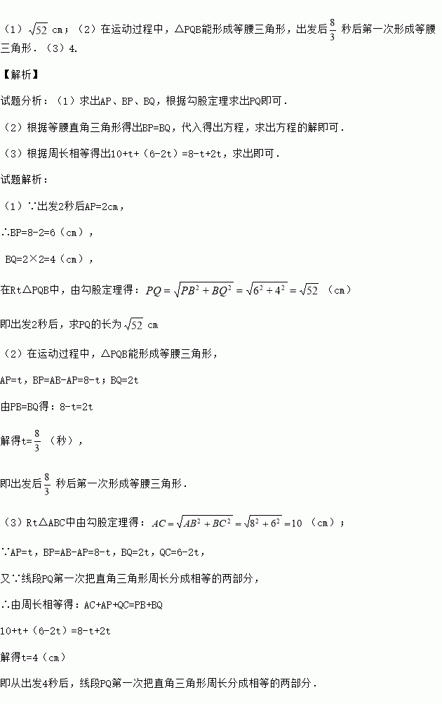 (3)出发几秒后,线段PQ第一次把△ABC的周长分成相等两部分?