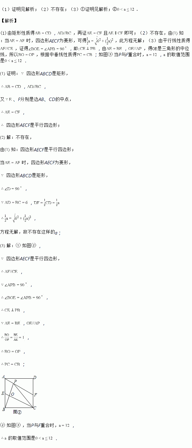 是否存在a的值使得四边形AECF为菱形,若存在求出a的值,若不存在说明理由;![]()
