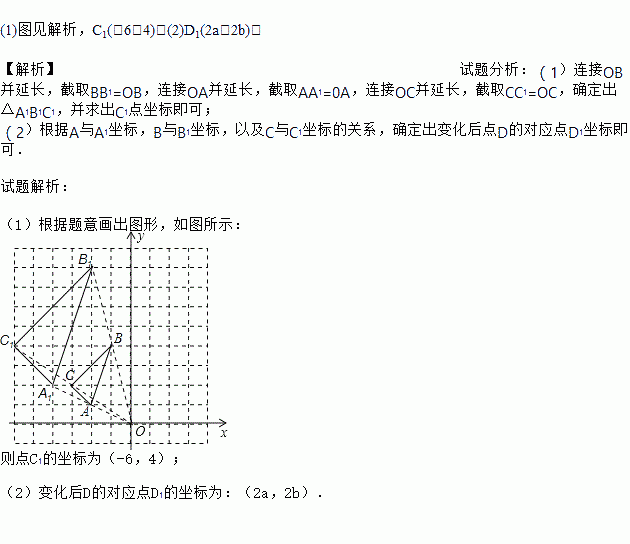 (2)若点D(a,b)在线段AB上,请直接写出经过(1)的变化后点D的对应点D1的坐标.