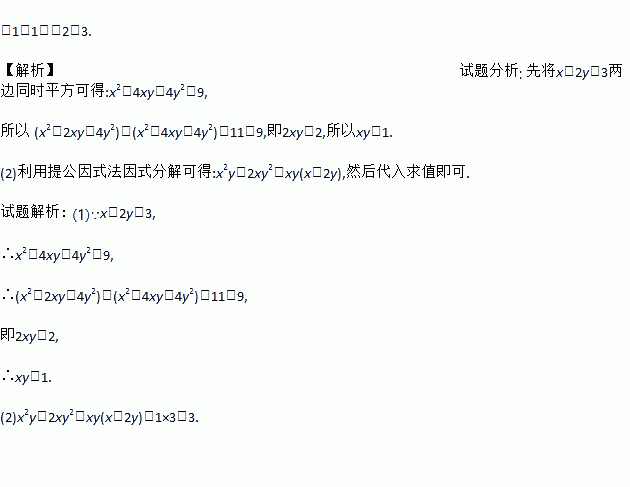 已知x-2y=3,x2-2xy+4y2=11.求下列各式的值:
