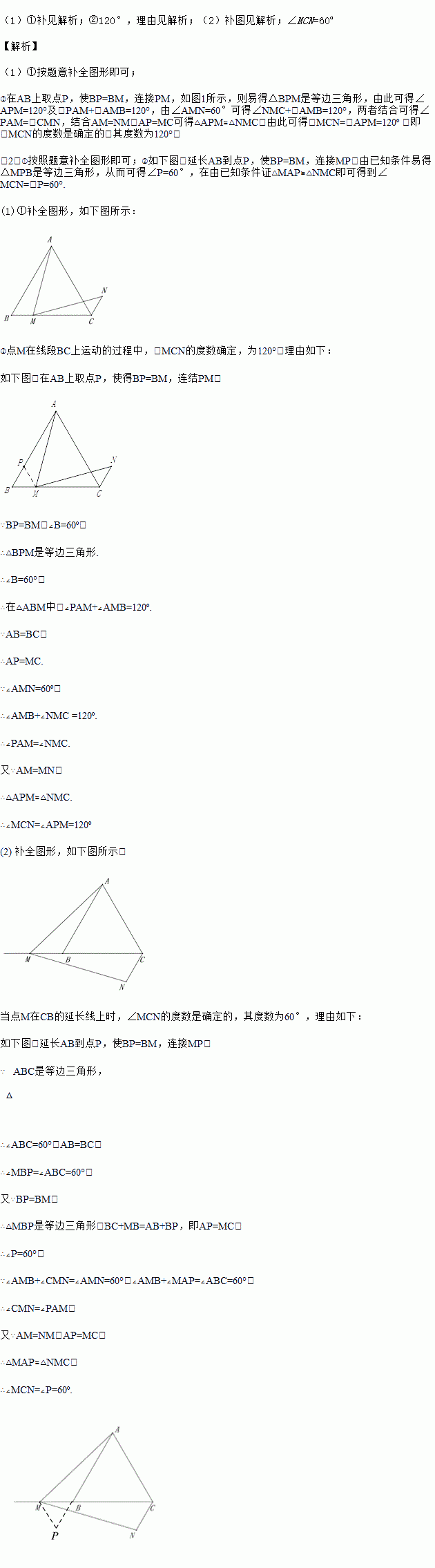 (2)Èç¹ûµãMÔÚÏß¶ÎCBµÄÑÓ³¤ÏßÉÏÔ˶¯£¬ÒÀÌâÒⲹȫͼ2£¬ÔÚÕâ¸ö¹ý³ÌÖУ¬¡ÏMCNµÄ¶ÈÊýÊÇ·ñÈ·¶¨£¿Èç¹ûÈ·¶¨£¬Ö±½Óд³ö¡ÏMCNµÄ¶ÈÊý£»Èç¹û²»È·¶¨£¬ËµÃ÷ÀíÓÉ.