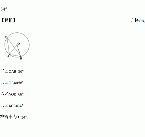 如图,A、B、C是⊙O上三点,∠OAB=56°,则∠ACB的度数是_________.