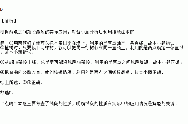 ②植树时,只要栽下两棵树,就可以把同一行树栽在同一直线上;