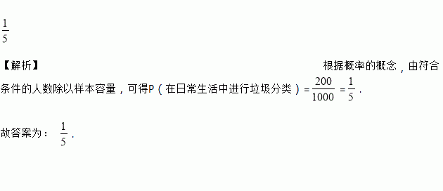 在一个有15万人的小镇,随机调查了1000人,其中200人会在日常生活中进行垃圾分类,那么在该镇随机挑一个人,会在日常生活中进行垃圾分类的概率是_____.