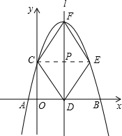 分析:(1)根据a、b、c的值,可确定抛物线的解析式,进而可求出C、F、E点的坐标,连接CE,交DF于P,即可得到CP、DP、EP、FP的长,由此可证得CE、DF互相平分,由此可判定四边形CDEF是平行四边形;知道了CP、DP的长,即可用勾股定理求出CD的长,同理可求出CF的长,易证得CD=CF,由此可判定四边形CDEF是菱形;(也可根据直线l是C、E的对称轴,得到CF=EF,由此可判定平行四边形CDEF是菱形)
