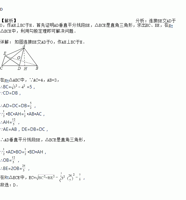 如图,在中,是的中点,将沿翻折得到,连接,则线段的长等于( )