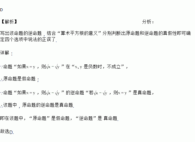 C. 原命题是真命题,逆命题是假命题 D. 原命题是假命题,逆命题是真命题